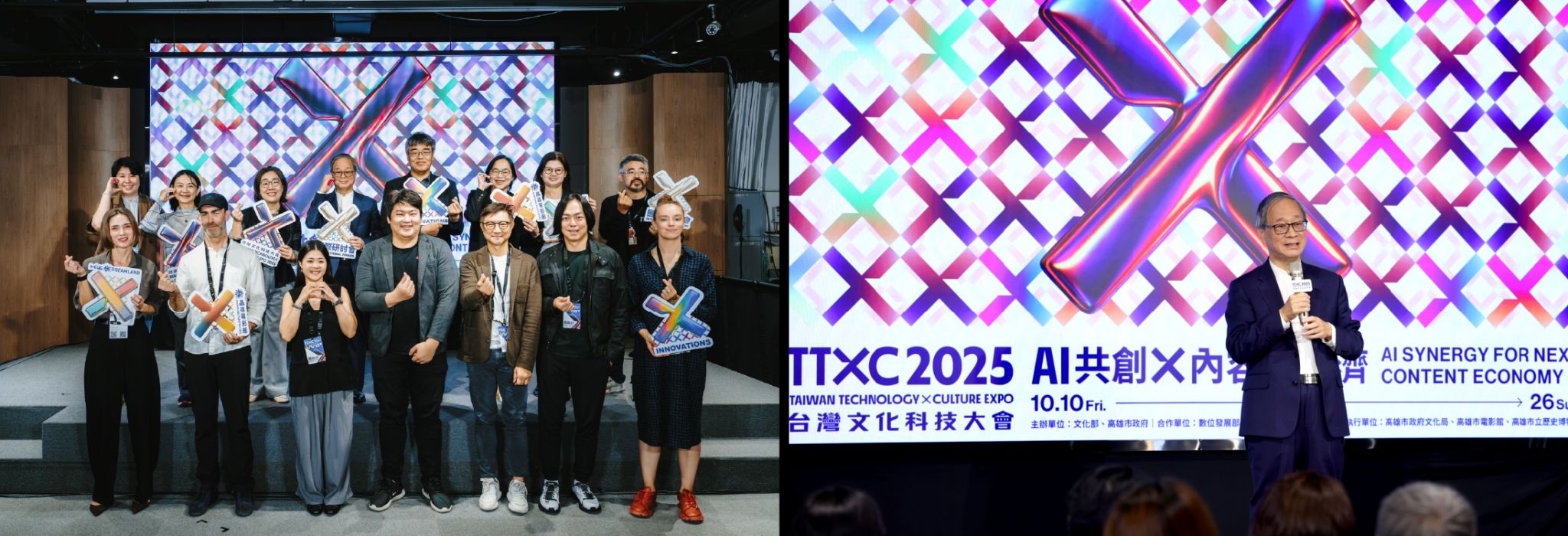 The Ministry of Culture and the Kaohsiung City Government are jointly hosting the 2025 Taiwan Technology x Culture Expo (TTXC). The International Forum took place today (Oct 22) at Kaohsiung's Pier-2 Art Center. Minister of Culture Li Yuan, Kaohsiung Deputy Mayor Li Huai-jen, Ministry of Digital Affairs Deputy Minister Isabel Hou, and Taiwan Creative Content Agency Deputy Director Chang Wen-ying, along with domestic and international cultural technology professionals, attended the event to further strengthen the discourse surrounding the expo’s main theme, "AI Synergy for Next Content Economy."