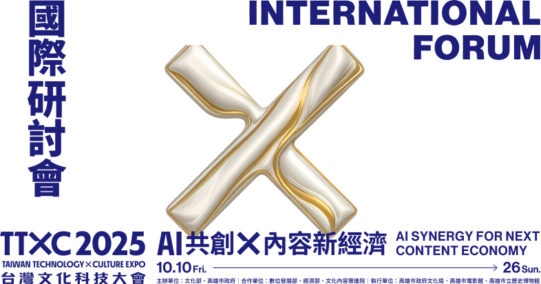 TTXC國際研討會以「AI共創 × 內容新經濟」為主題,邀集國內外領域的創新實踐者、產業專家與文化決策者,分享最前沿的技術洞見與產業觀察。深入剖析生成式 AI、虛擬製作、XR 應用、沉浸式體驗等多元面向,探討科技如何影響內容創作、製作與傳播的未來樣貌。